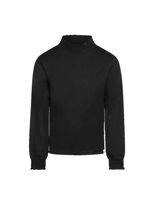 Elegant Black | Dekliška majica z dolgimi rokavi in višjim ovratnikom